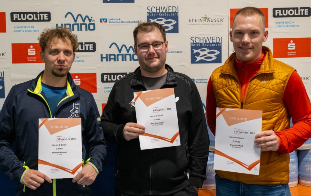 Am 3. Oktober 2025 waren wir mit Dominik Wolf und Klaus-Peter Schillinger bei den LA Open in Langenargen vertreten. Beide traten in der Klasse Aktive D an und sorgten für spannende und emotionale Spiele – sowohl im Einzel als auch im Doppel.